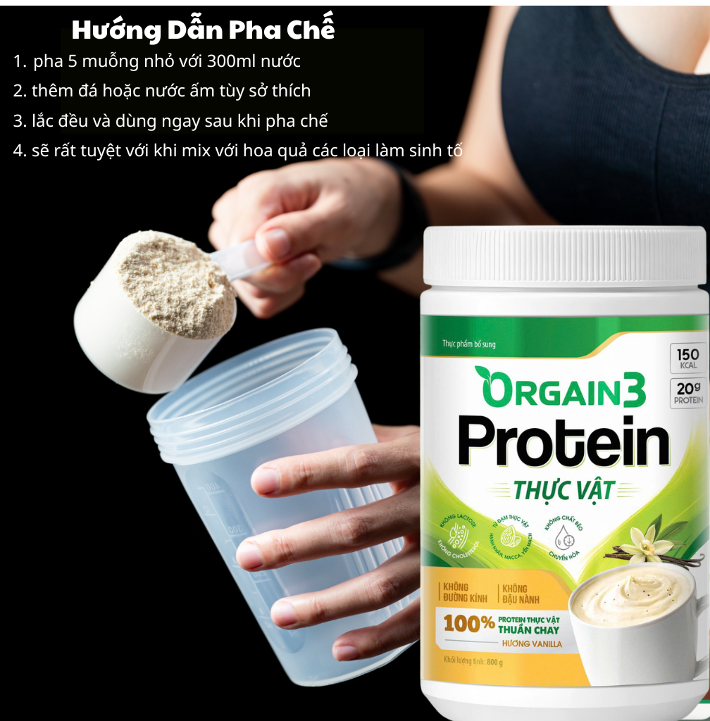 - Thêm Vào Bữa Ăn Hàng Ngày: Ngoài việc pha chế trực tiếp, bạn có thể thêm Orgain 3 vào các món sinh tố, cháo yến mạch, hoặc bánh nướng để tăng hàm lượng protein và dinh dưỡng cho bữa ăn.